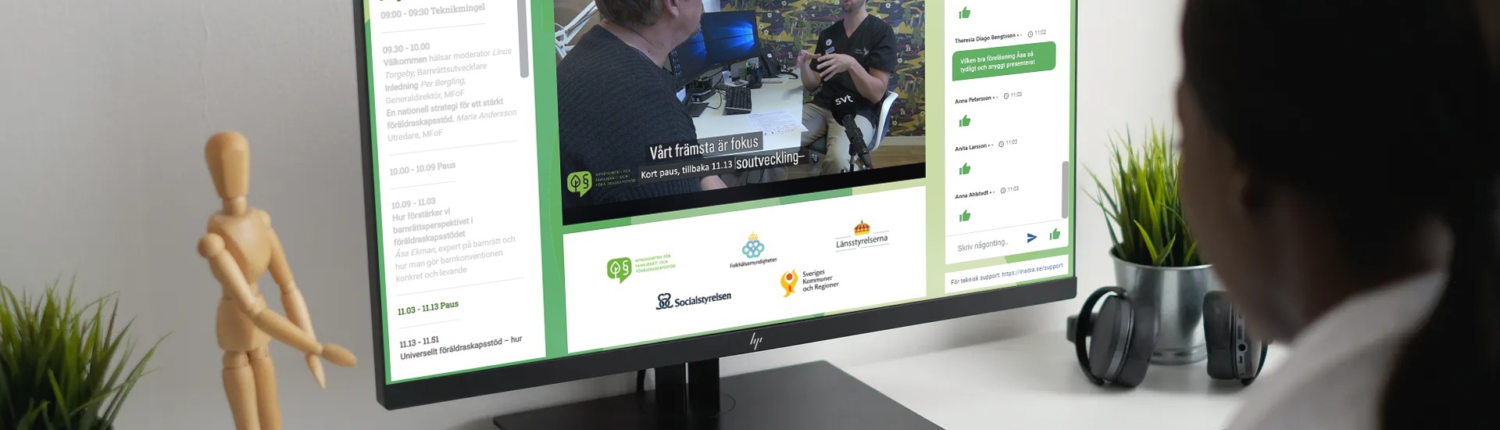 Helt integrerad chat med möjlighet till att chatta mellan alla deltagare, mellan enstaka deltagare och med utställare. Ingen extra inloggning krävs.